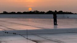 In this picture, our specialist is waiting for optimal conditions to perform an infrared scan. This roof happens to be a data center in the Kansas City area.  Coates Roofing uses infrared technology to identify defects in roofs that are commonly undetected. Owners receive reports with photos and documentation to show problem areas with recommended solutions.